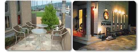 | ☆カフェテラスでワンちゃんと休憩できます。夜のお店はライトアップします☆ |